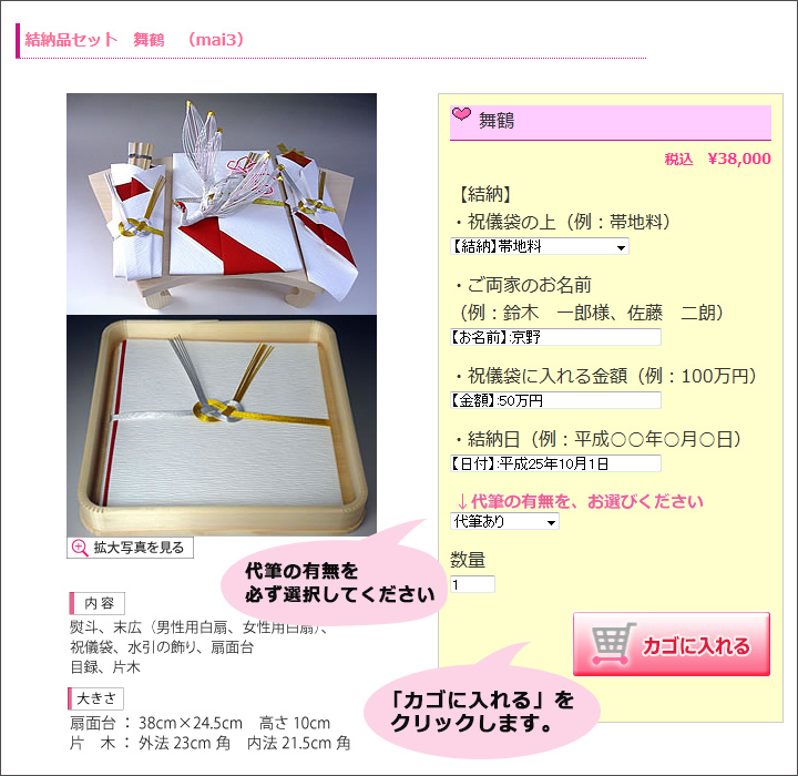 【1】ご希望の商品をカゴに入れるため、「カゴに入れる」ボタンをクリックして下さい。