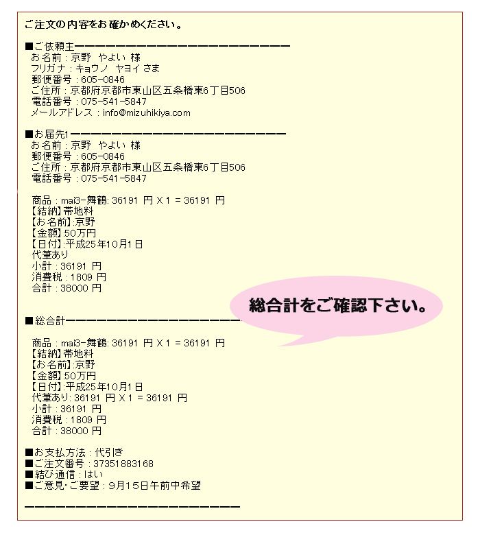 ※この後、自動返信で、ご注文確認のメールがすぐ届きます。