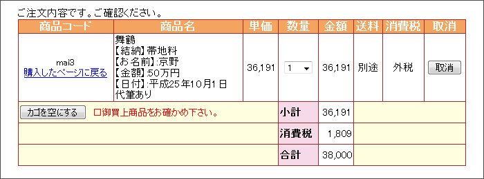 間違えてカゴに入れてしまった場合は、「取消」ボタンを押して下さい。