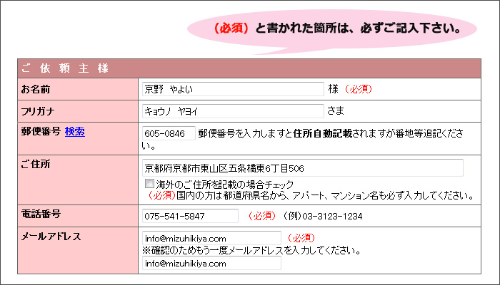 【4】ご依頼主様(ご注文者様)のお名前・ご住所などをご記入ください。