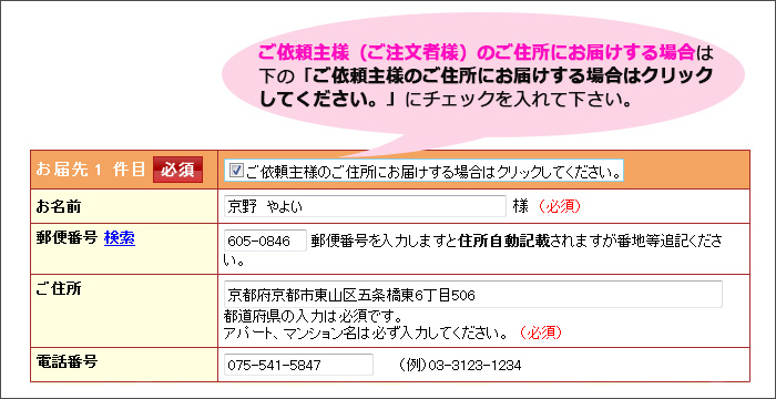 「ご依頼主様のご住所にお届けする場合はクリックしてください。」