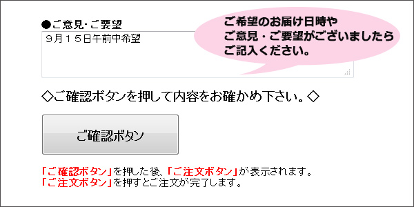 【8】ご希望のお届け日時や、ご意見・ご要望がございましたら 、「ご意見・ご要望」欄にご記入下さい。