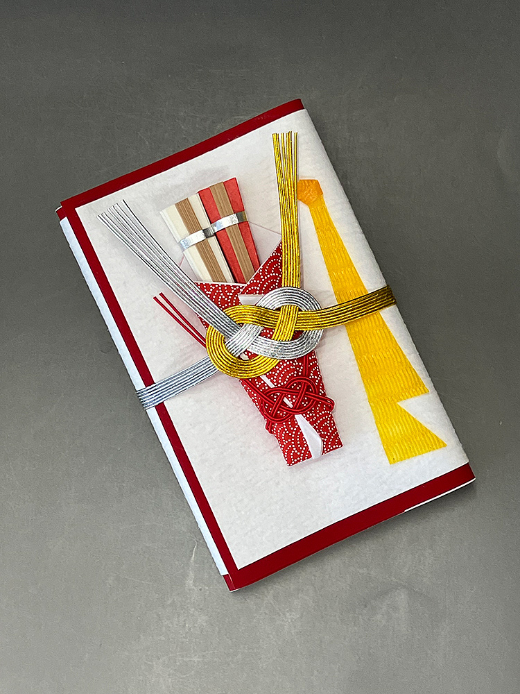 手漉き檀紙、顔料染め赤紙、金銀水引、本熨斗、懐紙(50枚)