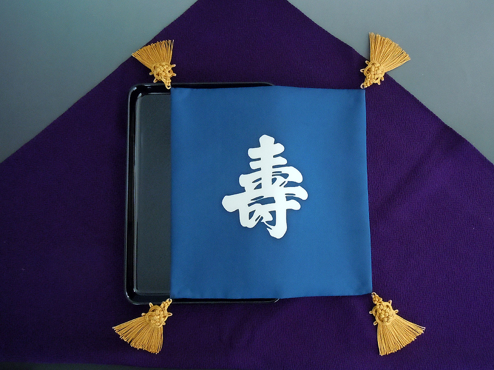 結納金を入れた袋だけでの場合でも、切手盆にのせ、富久紗(袱紗)を掛けて、風呂敷に包むと改まった感じになります。