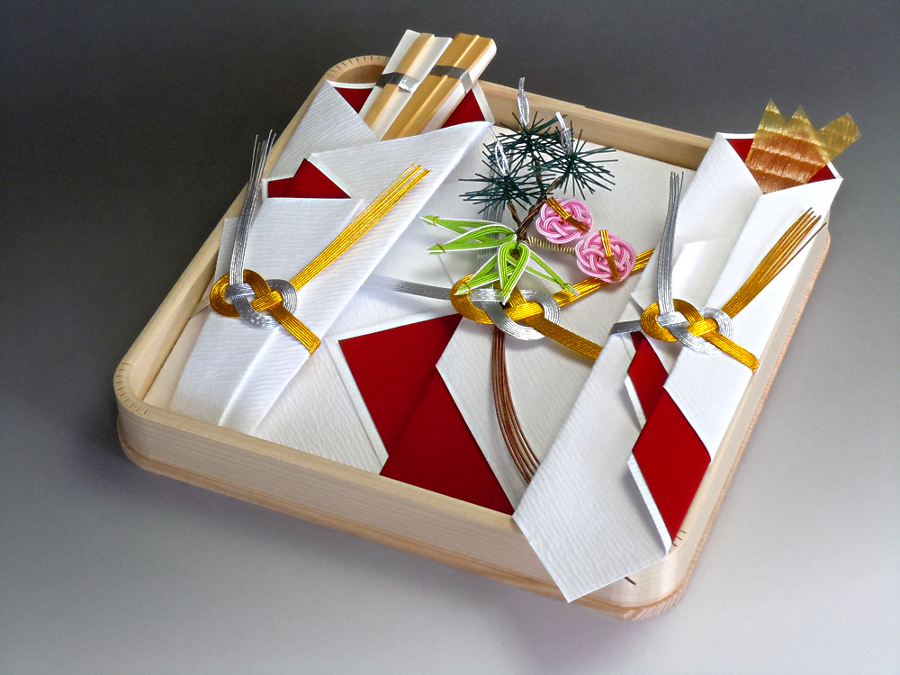 | 内容 | 熨斗、末広(男性用白扇・女性用白扇)、祝儀袋、水引の飾り、片木 |