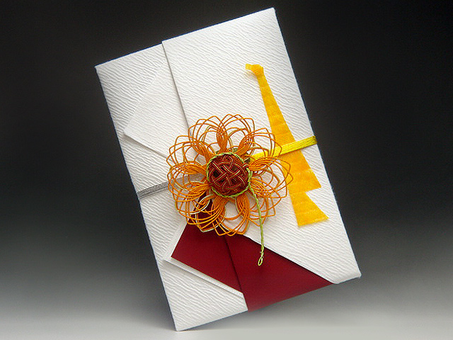 | 材料 | 手漉き檀紙 顔料染め赤紙、京水引 本熨斗 |