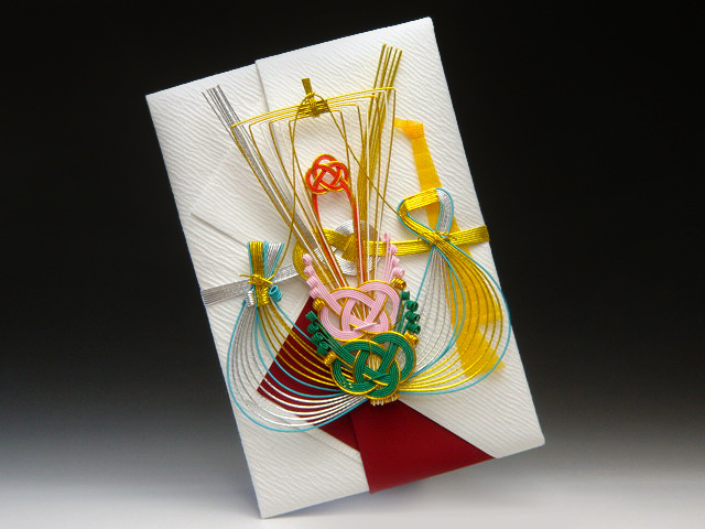 | 材料 | 手漉き檀紙 顔料染め赤紙、京水引 本熨斗 |