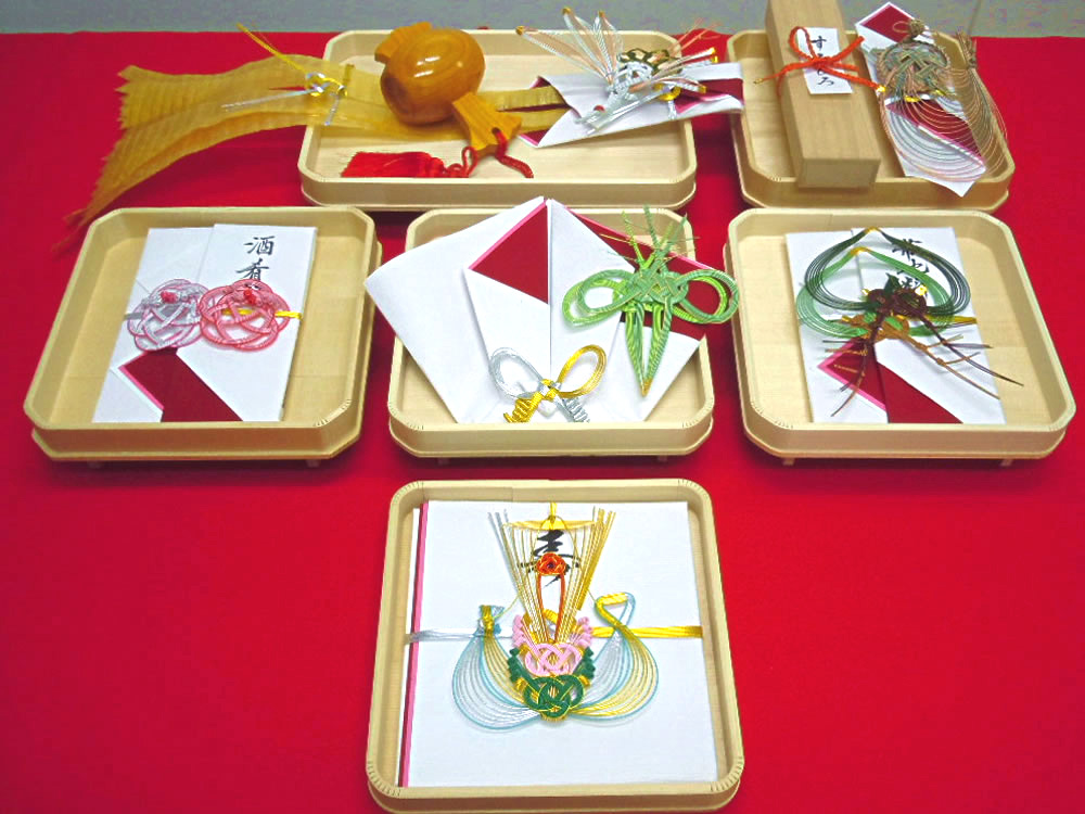 | 内容 | ・熨斗 ・末広(モーニング扇子、女性用白扇) ・小槌 ・祝儀袋2枚(結納金・酒肴料 各1枚) ・目録 ・水引の飾り ・祝儀台(角)3台 ・祝儀台(長)1台 ・片木 |