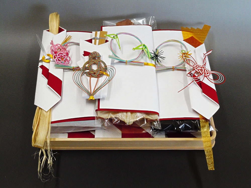 | 材料 | 手漉き檀紙、顔料染め赤紙、水引、本熨斗 |