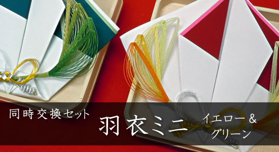 【同時交換】記念品だけの交換に 「羽衣ミニ イエロー&グリーン」 祝儀台(小)付き yui-d-yubiwa-hk-yg