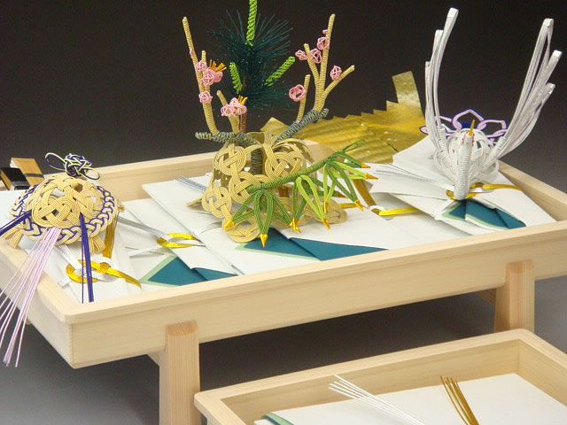 | 内容 | 熨斗、末広(男性用白扇・女性用白扇)、祝儀袋、水引の飾り、玉縁尺四台、目録、玉縁片木 |