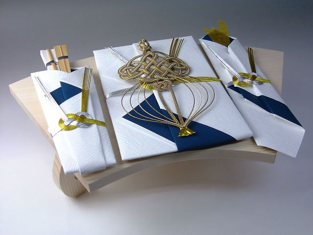 | 内容 | 熨斗、末広(男性用白扇・女性用白扇)、祝儀袋、水引の飾り、扇面台、目録、片木 |