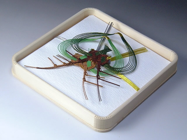 片木という白木の台にのせます。風呂敷に包んで持参すると丁寧です。片木(へぎ)は、二巾の大きさの風呂敷で包めます。