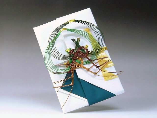| 材料 | 手漉き檀紙 顔料染め緑紙、京水引 本熨斗 |
