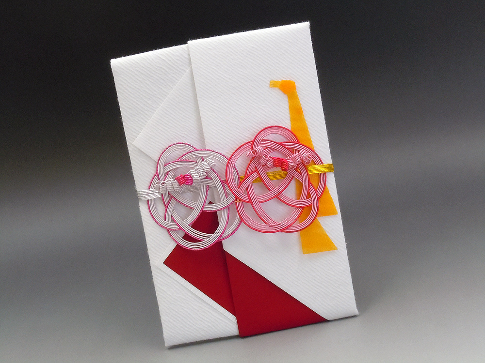 | 材料 | 手漉き檀紙 顔料染め赤紙、京水引 本熨斗 |
