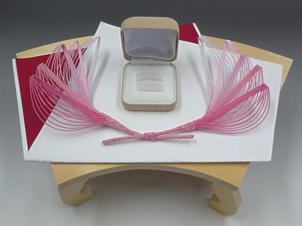 指輪だけを贈る結納の場合や、オプションで指輪を追加される場合は、こちらの台に指輪を乗せて、お渡しください。超略式で目録も付かないから、とても簡単です。